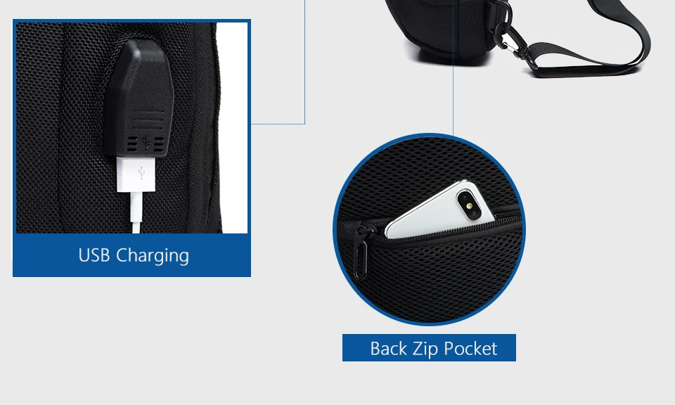 With built-in USB charger outside and built-in charging cable inside, this chest bag offers you a more convenient way to charge your phone while walking. The crossbody shoulder strap can be adjusted to the length you need.
