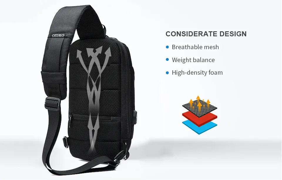 Our sling bag is made of high-density water-resistant and tear-resistant oxford fabric. Durable metal zippers close and open smoothly, ensuring a secure and long-lasting usage every day or weekend.