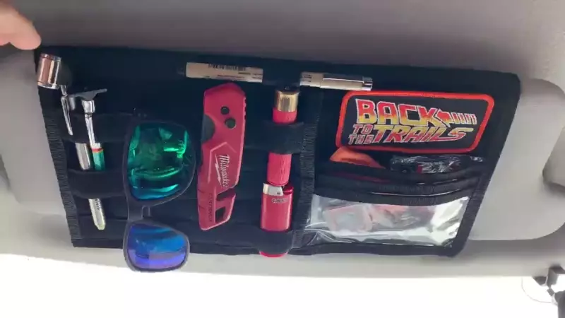 The Peakysuit visor Organizer is larger and wider, designed for trucks and pickups commonly found in the U.S. market, such as the Ford F150 F550, Dodge Ram, Toyota Tacoma, and more.