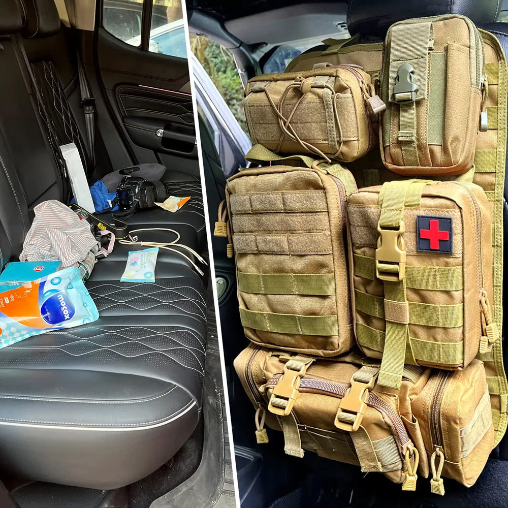 Get ready to elevate your vehicle's functionality and style. Click now to bring order to your journeys with our Tactical Seat Organizer!