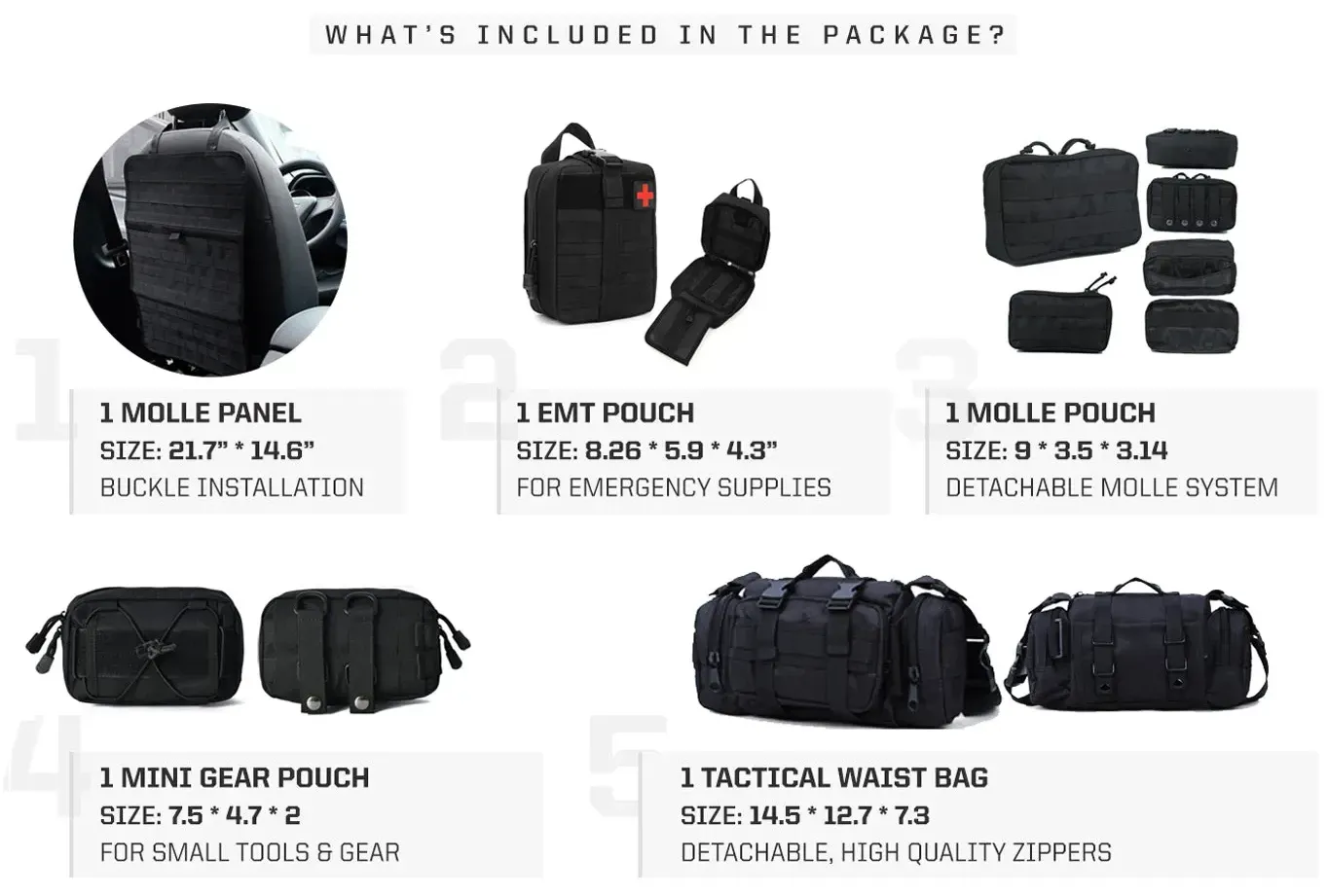 Transform the way you travel with our Tactical Vehicle Seat Back Organizer set. Designed for the modern adventurer, it's the perfect addition to your Jeep, truck, SUV, or car.